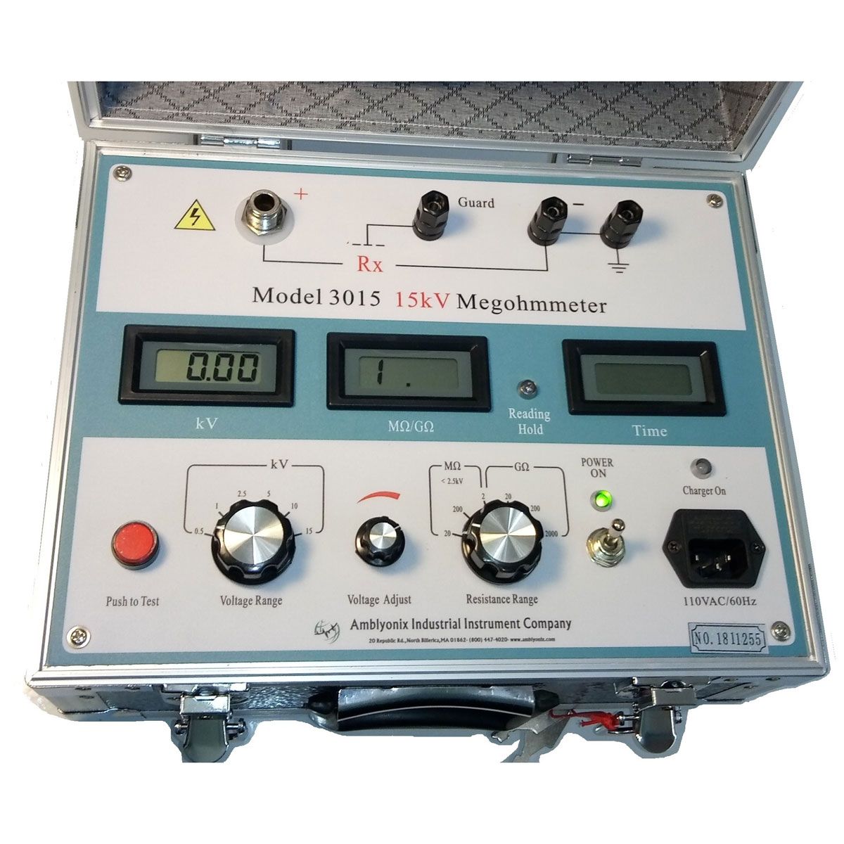 Lightweight, compact, and extremely portable, the Amblyonix Series 3000 Megohmmeters are designed to provide years of dependable service. Front panel control allows the user to smoothly adjust test voltages from zero to the desired value. Built-in timer function for measuring and analyzing Step Voltage Tests, Dielectric Absorption Ratios, Polarization Indexing and Dielectric Dissipation Factors. Strong anti-electric-field interference ability (up to 2mA). Suitable for substation testing applications.