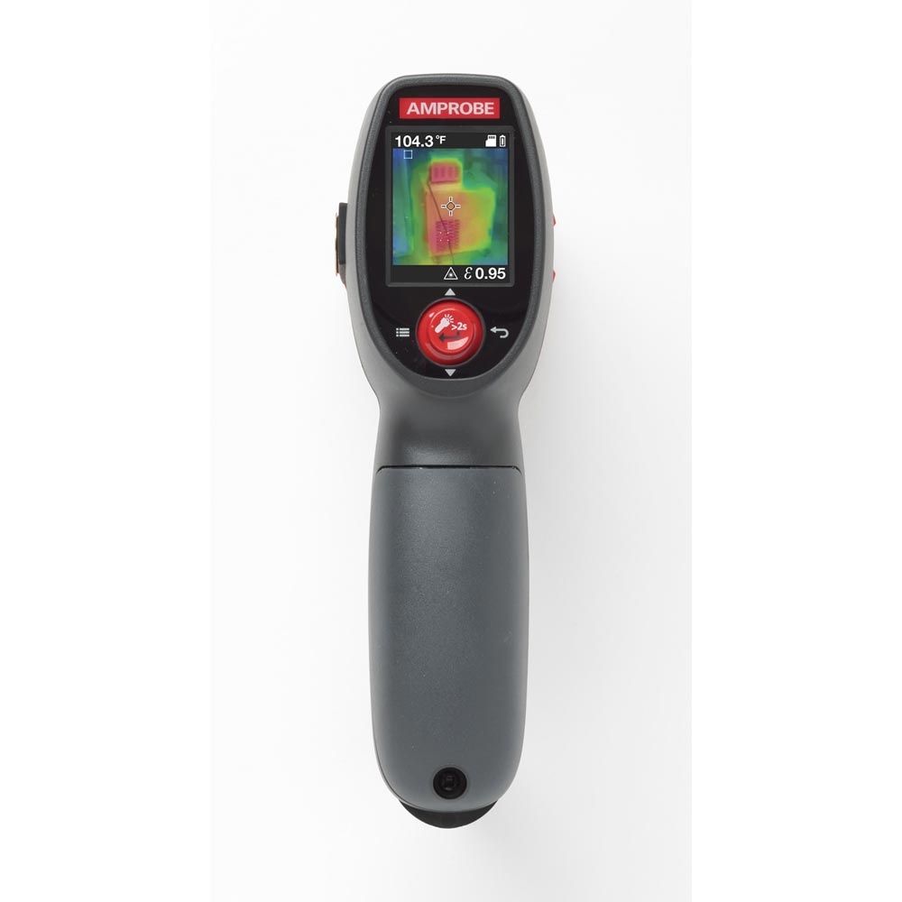 The Amprobe IRC-120 thermal camera is rugged with point-and-shoot functionality to give you a visual heat map combined with a sharp photographic image for quick and accurate identification of temperature related issues. Use the IRC-120 in any application where you want to detect differences in surface temperatures, including troubleshooting electrical connections, motors, HVAC and electrical, and insulation leaks around buildings to identify potential energy savings. The IRC-120 joins the IRC-110 with some upgraded features: data storage, laser pointer, flashlight and UV light.