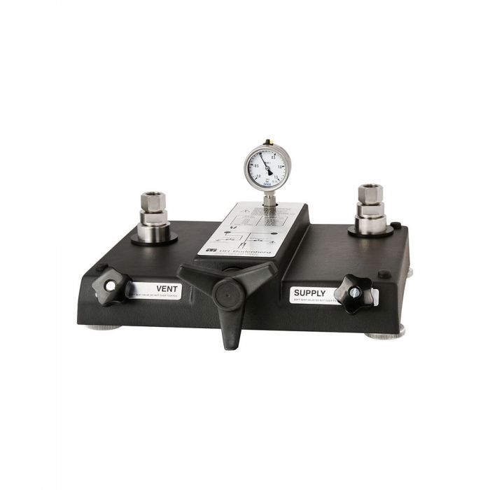 The model CPP120-X comparison test pump is a pneumatic comparison test pump for the provision of pressure up to 120 bar (1,740 psi). It is technically identical to the instrument base of the model CPB3500 dead-weight tester.