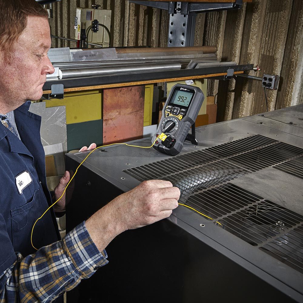 - Measures Voltage, Current, Frequency, Resistance, Continuity, Diode, Capacitance, and Temperature