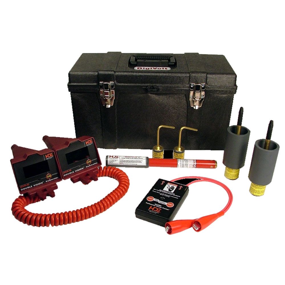 Voltage is displayed on the two large, bright LED displays that can easily be read from a distance or in bright conditions. The two LED displays are synchronized so that the same voltage reading is shown on both displays.