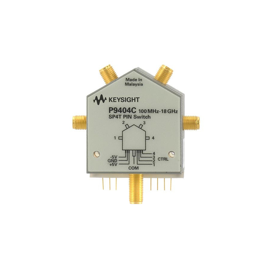 Keysight P9404C PIN Solid State Switch: 100 MHz – 18 GHz, SP4T, high isolation, low insertion loss, fast switching speed, ideal for RF signal routing applications.