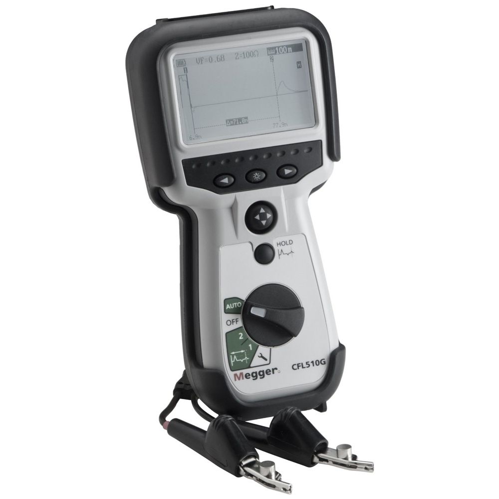 The Megger CFL510G Hand-held Time Domain Reflectometer is ideal for locating faults on metallic telephone, CATV and power cables. It is equipped with four output impedances (25, 50, 75, & 100 Ω) and has a velocity between 0.2 and 0.99 which will meet any cable test requirements.
