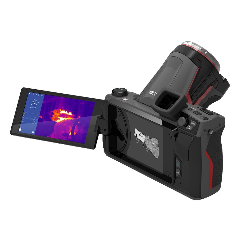 The user-friendly design, low weight, and intuitive handling make Sonel thermal cameras a pleasure to use. Experienced or new users needing a professional diagnostic tool will find the menus easy to navigate without training thanks to simple menus presented on a large touchscreen that can be rotated into any convenient angle for viewing. The rotating touchscreen, plus a lens that can swivel up and down, allows users to get measurements in areas that are not easily accessible or that would otherwise be awkward to view with a hand-held pistol-grip type camera.