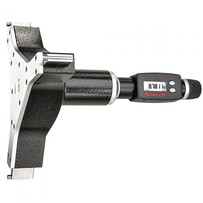 The Starrett 780XT Series Electronic Internal Micrometer provides IP65 level of protection against coolant, water, dirt and dust in hostile shop environments. In addition, it offers extended travel, reducing the need to exchange anvils. The ground contact points seat the internal micrometer faster and more accurately than the spherical contacts found on other gages. The rugged and accurate internal micrometer is available individually or in sets from .040 (1mm) to 12 (300mm). 8-9 (200-225mm) Range, 3-Point Carbide Contact (300mm).