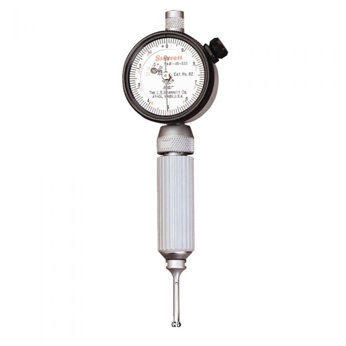 Starrett 82 Dial bore gages are available in convenient sets or with individual probes and dial indicators. Each set consists of a dial indicator, a body and actuating rod, two adjusting wrenches and the probes as specified below. The head may be ordered separately (includes dial indicator, body, and two adjusting wrenches). Individual probes can also be ordered as listed. All probes are furnished with an actuating rod. These gages are also available with electronic indicators by special order. Measurements are taken by comparison so some type of set master should be used as a reference standard. We recommend setting as close to the hole being measured as possible, and this can be easily done with gage blocks or with a micrometer Complete Set , .107-.266 Range .0001 Grad with Case with a micrometer.