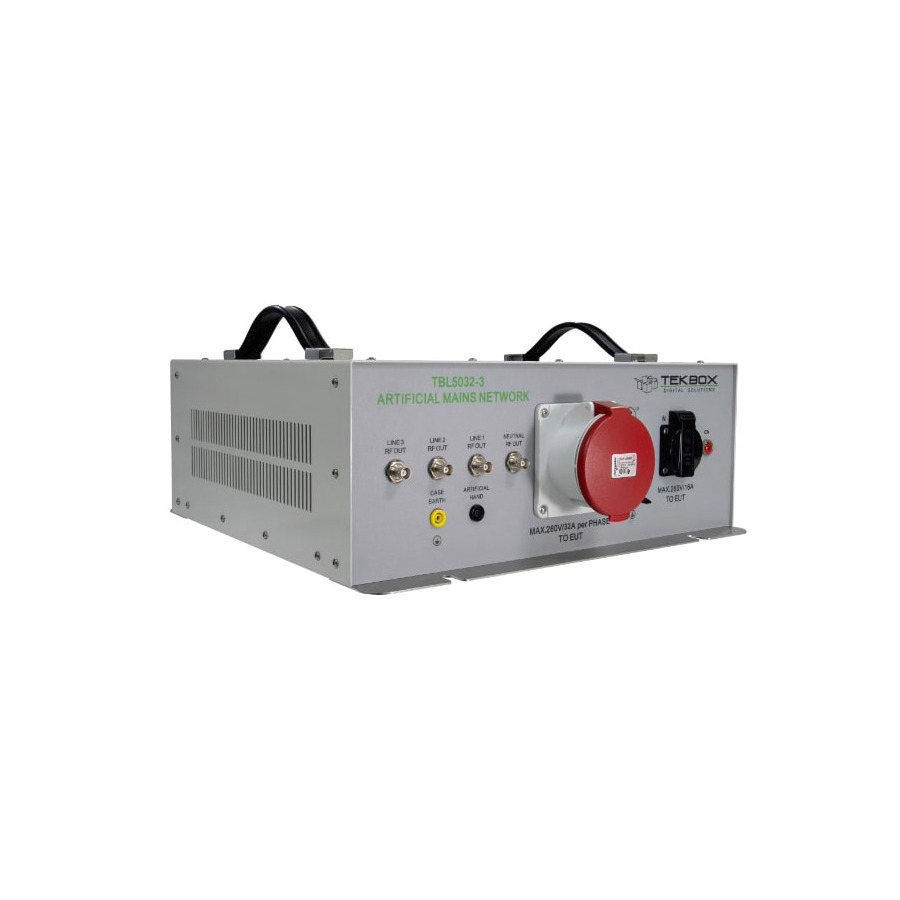 TekBox TBL5032-3-US Line Impedance Stabilization Network: Enhance Power Quality with 50 uH Inductance, 32 A Current Rating, CISPR 16 Compliance, and 9 kHz – 30 MHz Frequency Range for USA Applications.