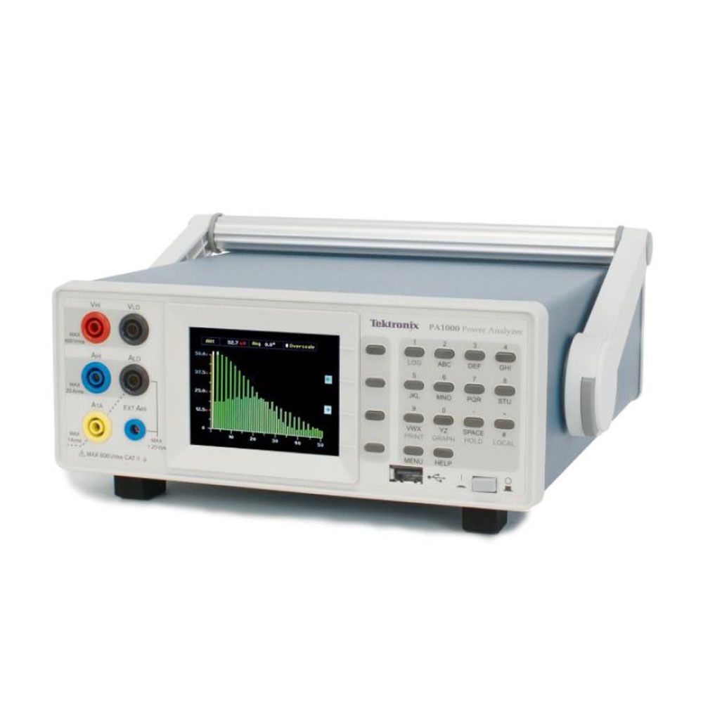The PA1000 from Tektronix is a single phase, single channel AC power analyzer. Its compact size, DMM-like user-interface, graphical display and powerful software enable users to quickly visualize, analyze and document power consumption efficiency of next-generation devices, including standby power measurements and harmonic analysis. Harmonics, THD and related measurements can all be analyzed simultaneously with other power parameters. It measures Volts and Amps RMS, true power, apparent power, reactive power, frequency, power factor, Volts peak ( , -), Amps peak ( , -), Volts and Amps DC, voltage and current crest factor. It is applicable at power, energy, standby power and harmonics measurements such as power supply and UPS, LED drivers/lighting, wireless charging, consumer electronics, home appliances, computers and IT equipment, battery chargers, inverters and converters.