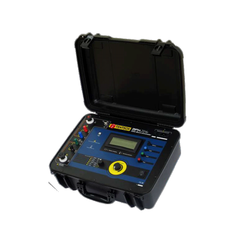 The MPK204e high current micro-ohmmeter is a portable, microprocessor-controlled instrument, used to accurately measure very low contact resistances of breakers and switches, busbars, transformers winding and engines, etc, with test currents from 1 mA to 200 A.